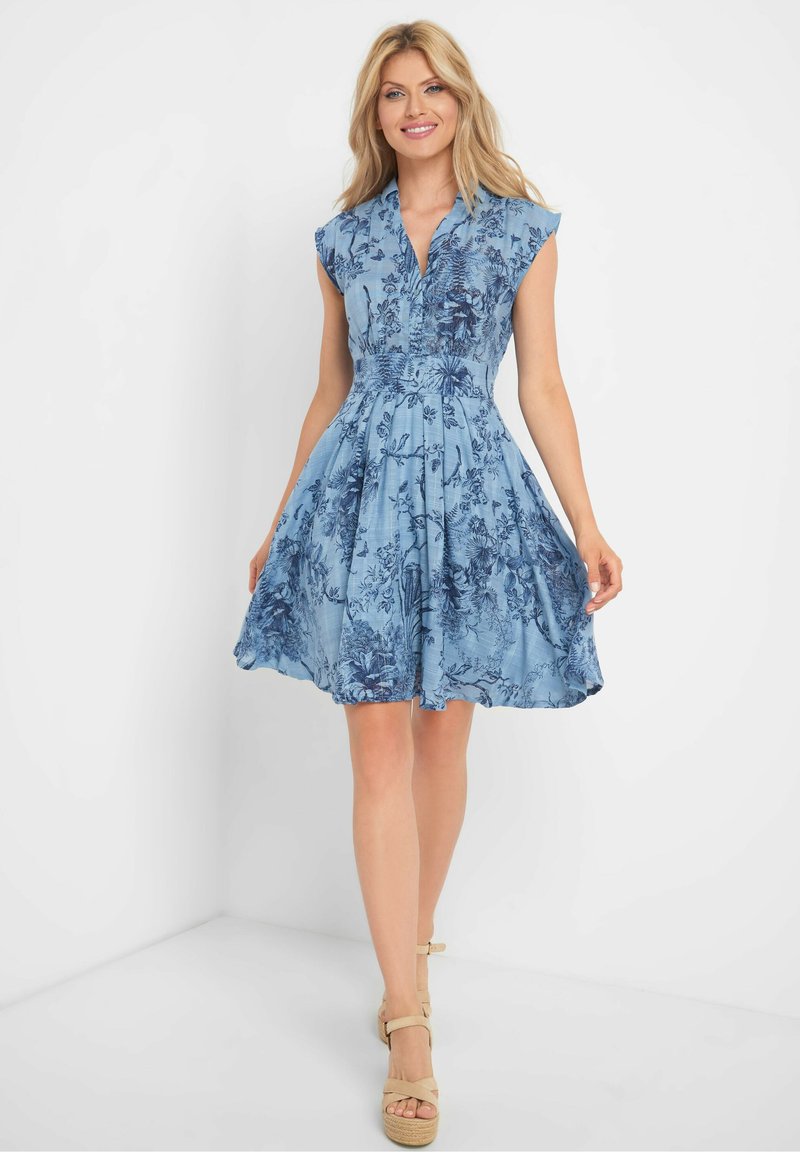 Orsay Kleid Mit Pflanzenmuster Freizeitkleid Jeansblaue Blau Zalando De