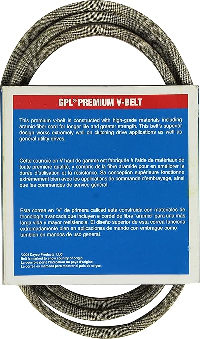 Compare with similar items. Add to Cart Add to Cart Add to Cart Add to Cart Customer Rating. Grounds home farm shop or industrial applications this Dayco GPL Premium Utility V-Belt operates efficiently even when subjected to temperature extremes high humidity moisture grit oil and grease.
