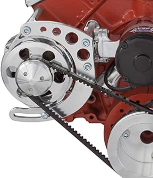 Chrome Plated 120 Amp 14 Volt Regulator GM Style weighs only 12 lbs. The March kit mounts the alternator on the passenger side cylinder head and the short serpentine belt wraps around the crank and alternator pulleys with the back side of the belt turning the 50L waterpump in the correct reverse-rotation. Standard Rotation Water Pump with Driver Side Lower Radiator Hose.